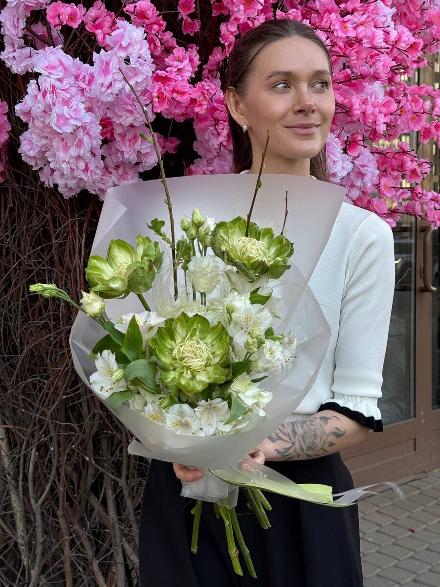 Наша весна только начинается🌸✨ Собрали для вас новую подборку прекрасных композиций 🤍 Букет сборный с зеленой пионовидной розой 4 590.- вместо 4 950.- Букет сборный с ранункулюсом 5 290.- вместо 5 750.- Букет из кустовой розы 5 990.- вместо 6 450.- 💌ОФОРМИТЬ ЗАКАЗ МОЖНО ТОЛЬКО ЧЕРЕЗ ЧАТ С МЕНЕДЖЕРОМ: @courrierofhappiness_bot