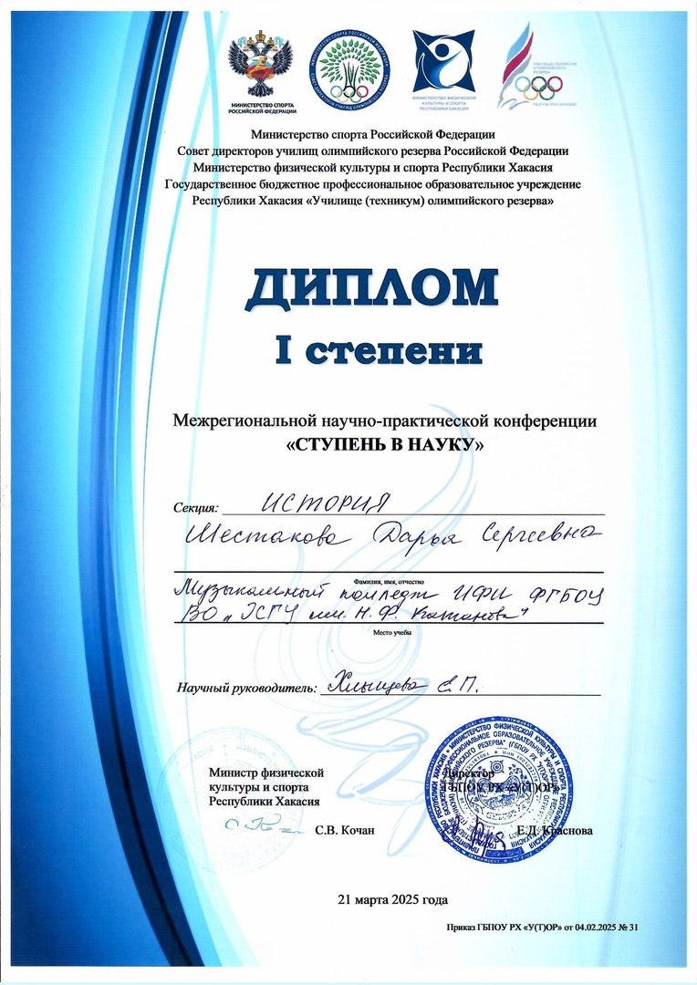 Студентки ХГУ – в числе лучших на научно-практической конференции Дарья Шестакова и Мелитина Попова из музыкального колледжа института филологии и искусств Хакасского госуниверситета стали победителями и призёрами межрегиональной научно-практической конференции «Ступень в науку»👏👏👏 🤓Защита научных работ проходила в Училище (техникуме) олимпийского резерва в Абакане. В ней приняли участие студенты среднего профессионального образования, а также учащиеся 7-11 классов из школ Хакасии и юга Красноярского края. Подробнее читайте ➡️здесь 😀ХГУ I Подписаться #ХГУ #вуз #ИФИ_ХГУ #khsu