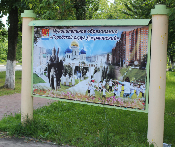 А теперь прогуляемся по городу Дзержинский. Начало прогулки можно посмотреть по ссылкам: После революционных событий Николо-Угрешская обитель была закрыта, а сложившийся вокруг монастыря рабочий посёлок получил имя в честь одного из вождей Октябрьской революции – Феликса Дзержинского. В гербе города изображена крепостная стена. Николо-Угрешский монастырь был заложен в 1380 году князем Дмитрием Донским в честь его победы над монголо-татарами на Куликовом поле. Значение этой победы отражено восходящим солнцем - символом свободы и мира. Красный цвет - в геральдике символизирует мужество, геройство, храбрость. самоотверженность и справедливую борьбу. Голубая волнообразность показывает, что город стоит на берегу реки Москвы. Дерево любви установлено в 2010 году. Верхний пруд с фонтаном Утиная братва Памятник Николаю Чудотворцу расположен на площади Святителя Николая у стен Николо-Угрешского мужского монастыря. А вот и Сквер Победы. Мемориал памяти погибшим в Великой Отечественной войне. П