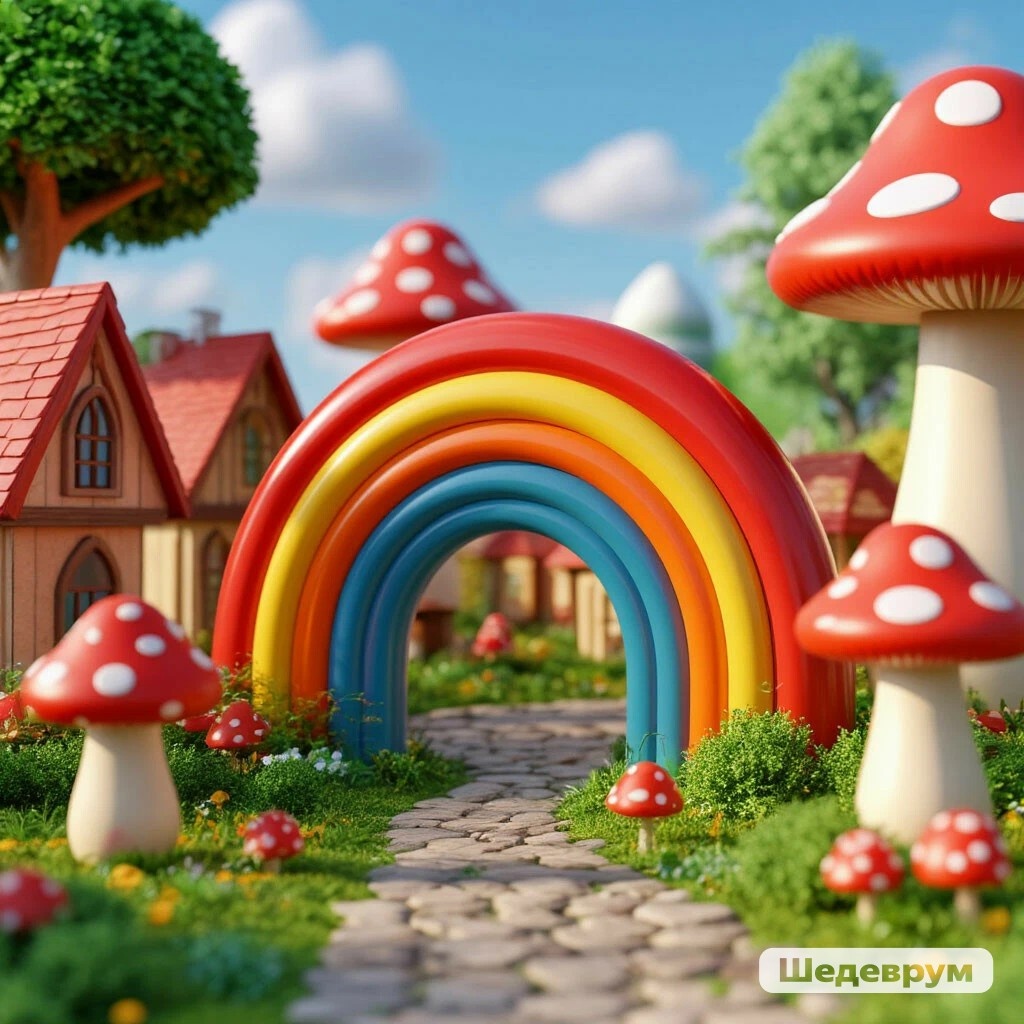 - Это главная площать нашего города- развел лапами Тео, пропуская ребят вперед через арку в виде радуги. - По периметру главной площади пролегала железная дорога, на которой стоял большой паровозик с разноцветными вагонами.