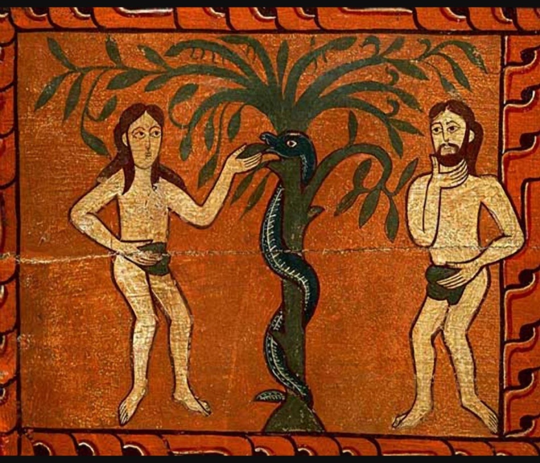Древо жизни растущее посреди рая, и является символом этих ранних бесполых людей. А вот, разделившиеся на мужчин и женщин, на Адама и Еву, они уже символизируются древом познания добра и зла.