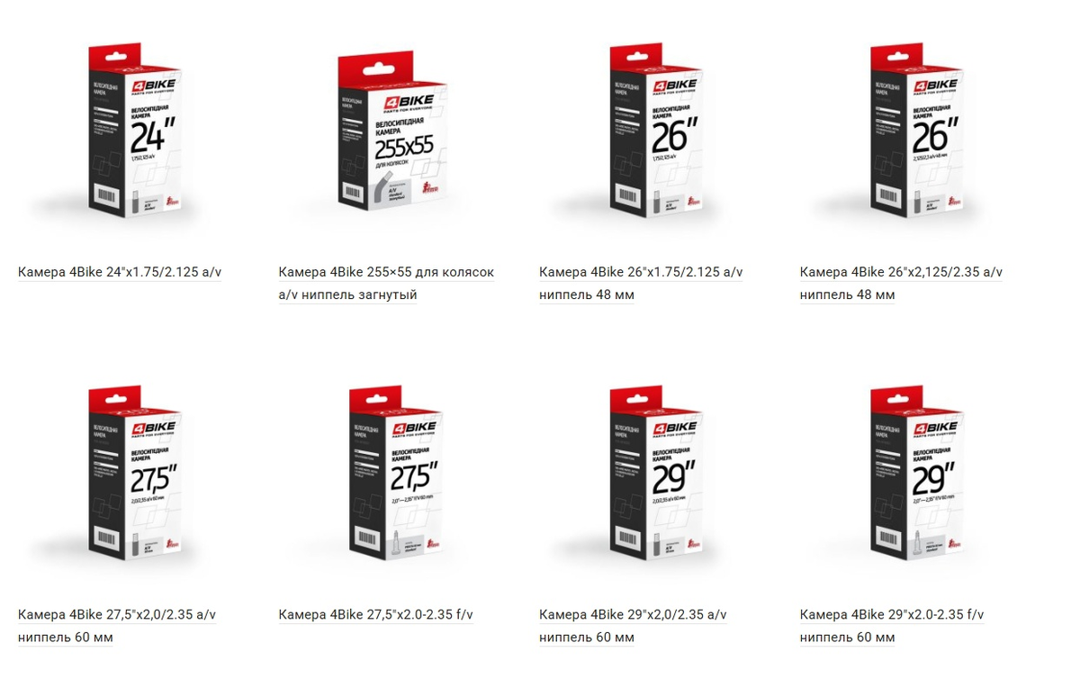 Если у вас пробилась камера, то всегда необходимо иметь запасную, особенно если это произошло вдали от дома. Камеру можно поменять самостоятельно и бывают такие проколы, когда не поддаются ремонту. Поэтому для вас у нас есть ВСЕ размеры велосипедных камер, по очень адекватным ценам. Переходите в каталог и найдите магазин в вашем регионе: Велосипедные покрышки и камеры 4BIKE — это популярный выбор среди велосипедистов благодаря их качеству и доступной цене. Вот пять основных особенностей и преимуществ: 1.Качество материалов. Мы используем высококачественные материалы, что обеспечивает долговечность и надежность продукции; 2.Разнообразие моделей. 4BIKE предлагает широкий ассортимент покрышек и камер для различных типов велосипедов: шоссейных, городских, горных и других. 3.Соотношение цена/качество. Продукция 4BIKE часто выделяется хорошим соотношением цены и качества, что делает их доступными для широкого круга велосипедистов. 4.Легкость в установке. Покрышки и камеры 4BIKE, как правило,
