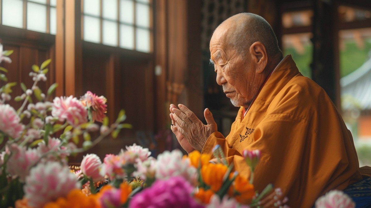 Создано на основе запроса: a deeply wise and compassionate elderly Zen Buddhist monk, around 90 years old, teaching young laypeople in a serene temple courtyard with blooming flowers, warm lighting, wearing traditional orange monk robe, peaceful and wise atmosphere --- Автоперевод: Глубокий мудрый и сострадательный пожилой буддийский монах -дзен, около 90 лет, обучает молодых миряне в безмятежном храме с цветущими цветами, теплым освещением, ношением традиционного апельсинового монаха, мирной и мудрой атмосферой Классно вышло? 🤔 https://dzen.ru/id/65c0c65c86e4f837c27b24d7 #ИИ #AI #нейросеть #midjourney #art