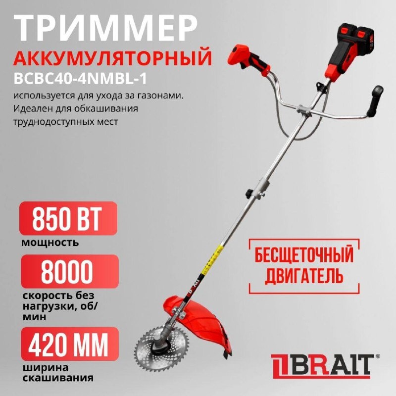 ⚡️ Мощный триммер аккумуляторный BRAIT BCBC40-4NMBL-1🌱 🔝 Идеален для обкашивания труднодоступных мест. ✅BCBC40-4NMBL-1 обеспечивает полную свободу движений и отсутствие привязки к электросети. 🌐 https://fdbrait.ru/ ☎+7(342)246-20-36