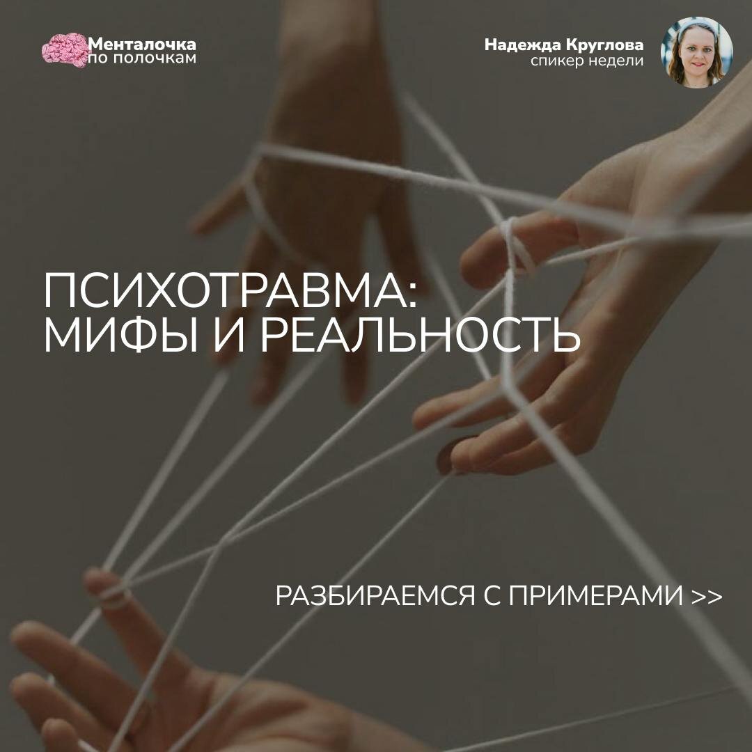 Рассмотрим несколько убеждений о травме, которые далеко не всегда являются правдой Эти мифы часто мешают людям обратиться за помощью или получить поддержку от окружающих. Важно распространять достоверную информацию о травме, чтобы снизить стигматизацию и помочь людям найти путь к выздоровлению. Автор текста Надежда Круглова: https://t.me/mentalochka_daily/3110