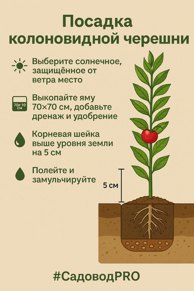 🍒 Как посадить колоновидную черешню — просто и без лишней суеты