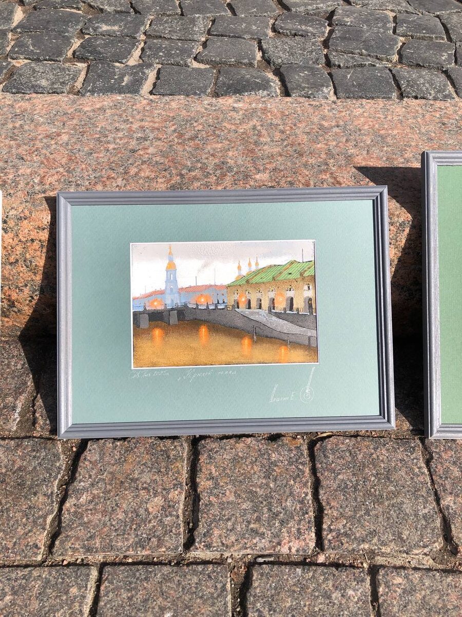 Картин много. Обычно в таких местах «популярные» сюжеты разного уровня мастерства. Но вот этот автор привлек внимание обобщением. Такое очень люблю . И так как я пастелист, стараюсь обобщение пятен спихнуть на цвет бумаги))