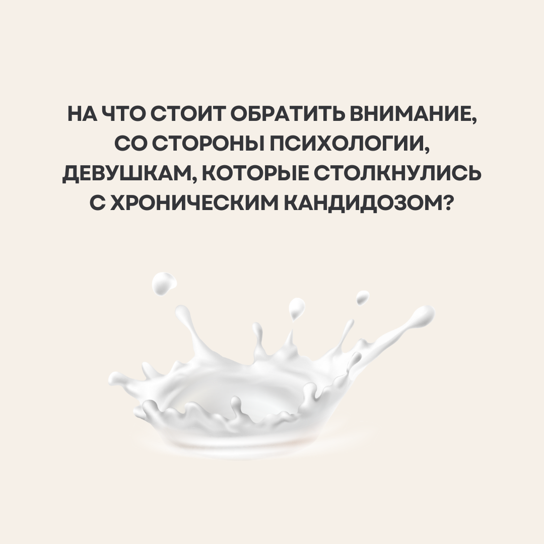 Последнее время все больше и больше женщин обращаются за помощью к психологу по направлению врачей. Наш мир развивается с огромной скоростью, в котором медицина и психология не стоят на месте. И благодаря этому развитию, изо дня в день, я наблюдаю за тем, как именно работа с психологом уводит в ремиссию многие заболевания. Сегодня я предлагаю вам поговорить о очень неприятной, зудящей, причиняющий огромный дискомфорт миллионам женщин - молочнице. Причин возникновения грибов много, начиная от незащищенной близости и заканчивая погрешностями в питании. Некоторые женщины сталкиваются с симптоматикой разово, и избавляются от грибов за счет простого курса лечения, а с кем-то этот симптом остается на долгие годы… каждый месяц возвращаясь вновь и вновь, изводя девушек неприятными ощущениями в интимной области. Вы наверное удивитесь, но лечением хронического кандидоза занимается не только врач гинеколог, а подключается еще и психотерапевт (психолог). Начало любого заболевания, которое перех