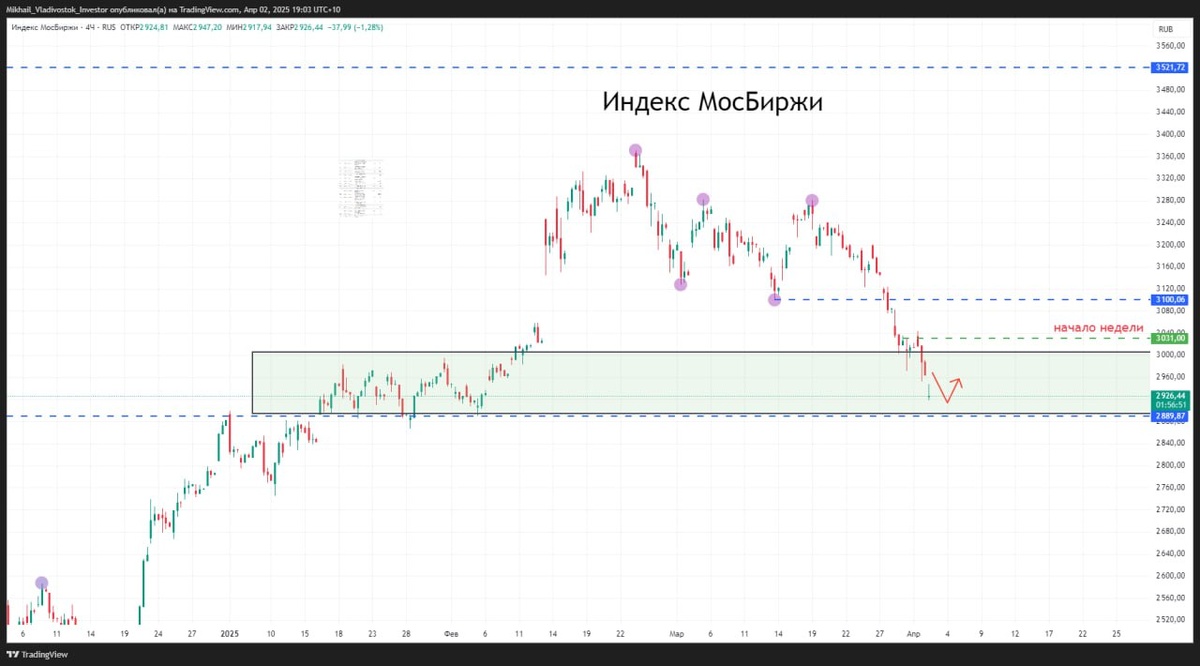Индекс МосБиржи -1,3% в моменте Жду в ближайшее время как минимум остановку в виде реакции покупателя. А от того какая он будет, уже определиться дальнейшая судьба