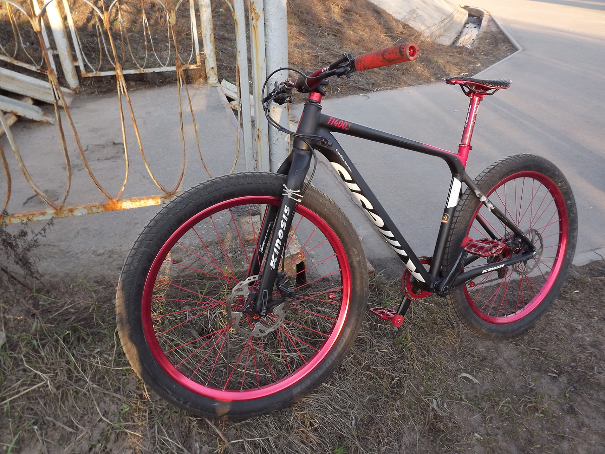 Я вот, скажу честно, до вчерашнего дня ничего про них не знал. Задача стояла получить велосипед в коробке, вынуть его из таковой и привести в едущее состояние. И эта задача выполнена. Вторая задача — довести его до максимально возможного в нашем бренном мире идеала, ещё в процессе. Велосипед был собран на самом Юге, где и прошёл боевое крещение в катании по горам и долам. Впечатление о себе составил у владельца весьма положительное. Kinesis T1400S Коробка получена, кони на ней не валялись, наковален на неё явно не роняли — уже хорошо. (А то помню я, как одному знакомому парню седло узлом перевозчики завязали, не вскрывая коробки). Упаковано качественно — ещё лучше. Жаль только, переключатель не сняли, впрочем — обошлось. На ось передней вилки была надета проставка из бамбука, дабы её не сплющило. Достаём аппарат из коробки. Обращают на себя внимание огромные катки 27.5х2.8 и почти вертикальные рулевая и подседельная трубы. Оба колеса на осях. Перья настолько короткие, насколько это во
