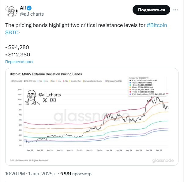 Уровни ценовых коридоров выделяют два критических уровня сопротивления для биткоина: