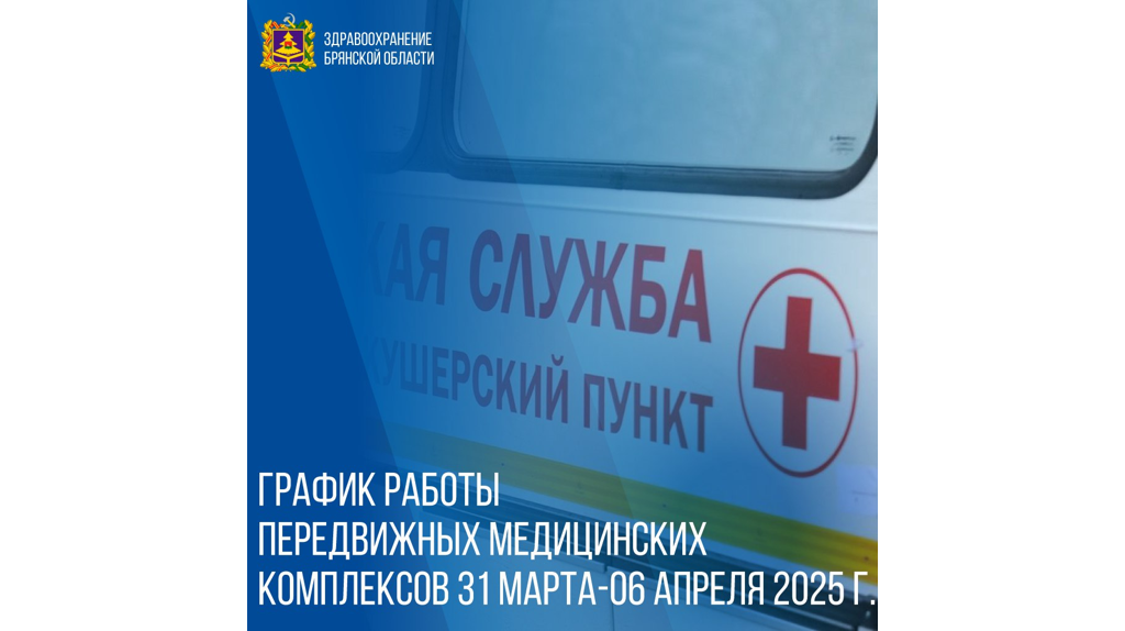 Появился график работы в Брянской области передвижных медицинских комплексов с 31 марта по 6 апреля 2025 года. Его обнародовал департамент здравоохранения региона.