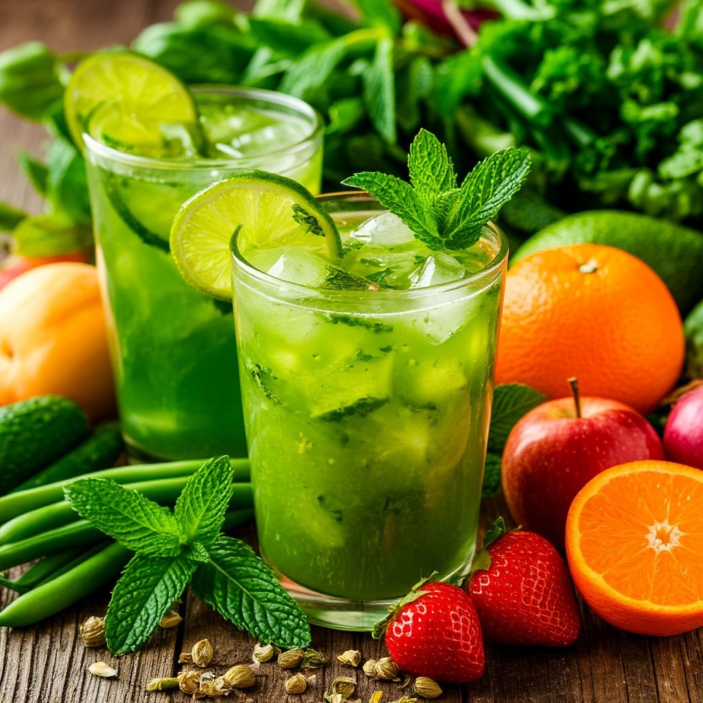 - утром полезно выпить любой зеленый коктейль со свежими фруктами, овощами и зеленью;