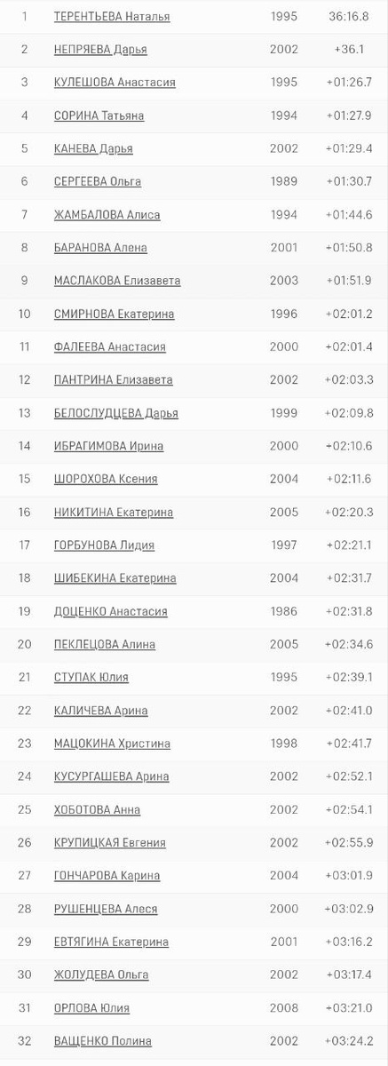 ОБЩИЙ ЗАЧЁТ. ЖЕНЩИНЫ.