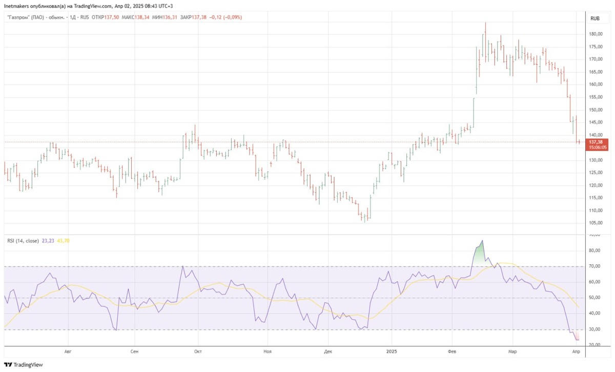 О нерыночности продаж Газпрома говорит и вот такая картинка в RSI