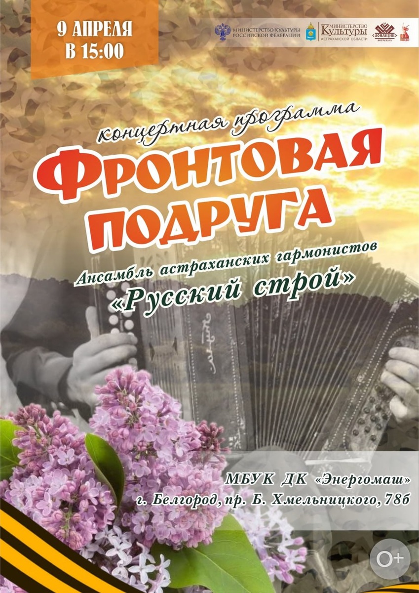 ✅ Забрать свой бесплатный билет можно на сайте Культурный регион: https://bel.cultreg.ru/events/504954/koncert-frontovaya-podruga