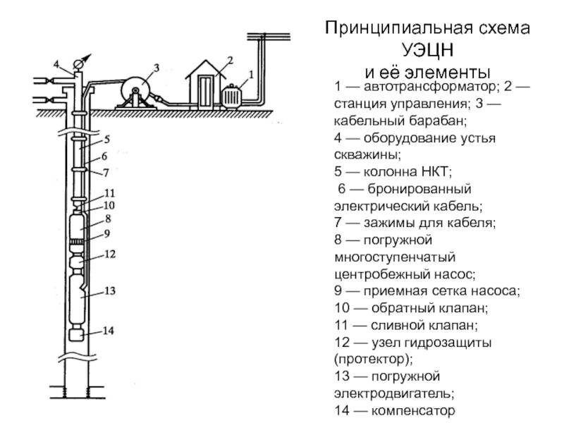 Электроцентробежный насос (ЭЦН) — ключевой элемент системы. Его основная функция — подъём жидкости.