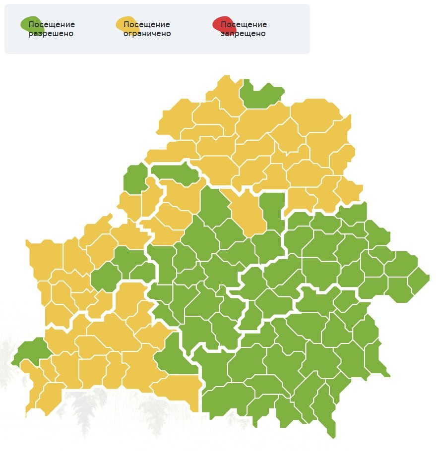 🌳Карта запретов и ограничений на посещение лесов в районах Республики Беларусь