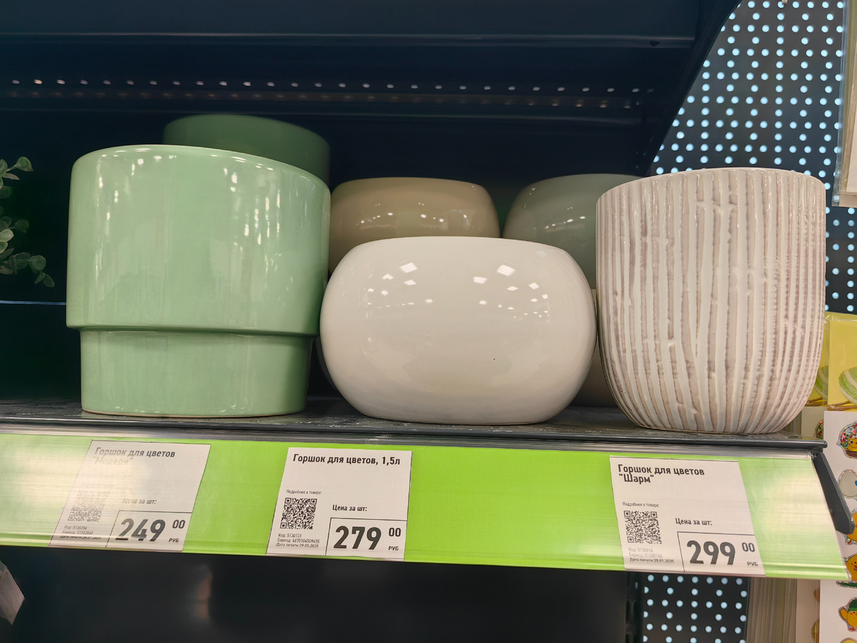 У нас в больнице я лежала уже в четырех отделениях - реанимации, нейрохирургии, травматологии и вот теперь реабилитации)) Общий тренд у нас неспешность))) И ввиду того, что все делается поэтапно и не торопясь, у меня есть время чтобы ходить гулять. Тут прекрасный лесной массив вокруг и недалеко магазины, примерно в километре с небольшим от моего корпуса. И вот в целях моциона я хожу до магазинов и обратно, чтобы была какая-то цель у похода))) Есть у нас тут и свой Фикс-прайс. Мне он давно знаком, магазин очень большой, но ассортимент обычно немного странный. Тем не менее, я нашла кое-что интересненькое и там. Самое банальное, но очень миленькое, это керамические горшочки. Вполне приятные и нейтрального дизайна. Опять пробежалась по посудному отделу, тут обнаружились еще цветные стаканы, которые могут подойти под фитильный полив. Нашла парочку плетеных корзинок, в которые можно миленько составить стаканчики с небольшими растениями. Тут же обнаружились и деревянные ящики, которые тоже по