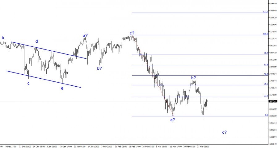 https://basechop.ru/wordpress/?p=36604 Волновая разметка 24-часового графика для инструмента #SPX выглядит в целом понятно, и это очень хорошо. Глобальная пятиволновая структура даже в окно терминала на минимальном масштабе не умещается. Проще говоря, фондовые индексы США росли очень долго. А мы знаем, что тренды чередуются. В данное время предположительно завершено построение волны 5 в 5. Инструмент осуществил четыре неудачных попытки прорыва отметки 6093, что приравнивается к 200,0% по Фибоначчи от волны 4. На мой взгляд, в ближайшее время мы увидим коррекционную серию волн. Фондовый рынок США перегрет, все больше экспертов говорит о «мыльном пузыре». При переходе на 4-часовой график(картинка выше) видно законченную сложную коррекционную структура a-b-c-d-e и повышательную структуру, которая приняла вид a-b-c. Следовательно, в данное время началось построение новой понижательной структуры, и ее первая волна очень похожа на импульсную. Далее мы увидели коррекционную повышательную вол