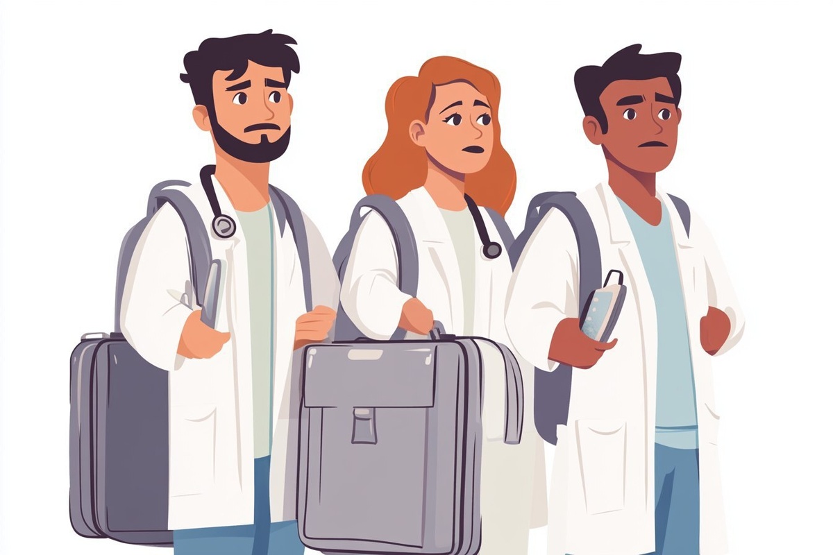 Создано на основе запроса: Multiracial scientists leaving the US with sad expressions - simple icon illustration white background