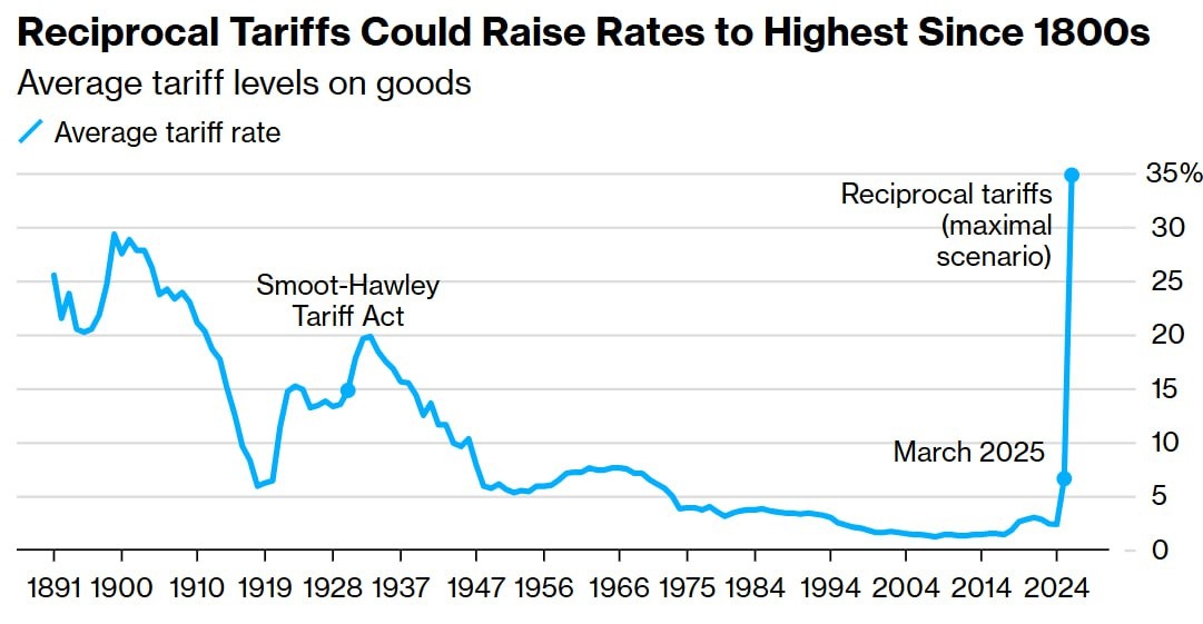 Взаимные пошлины могут поднять средний уровень ставок на товары до самого высокого уровня с 1800-х годов. Это серьезный риск для мировой экономики