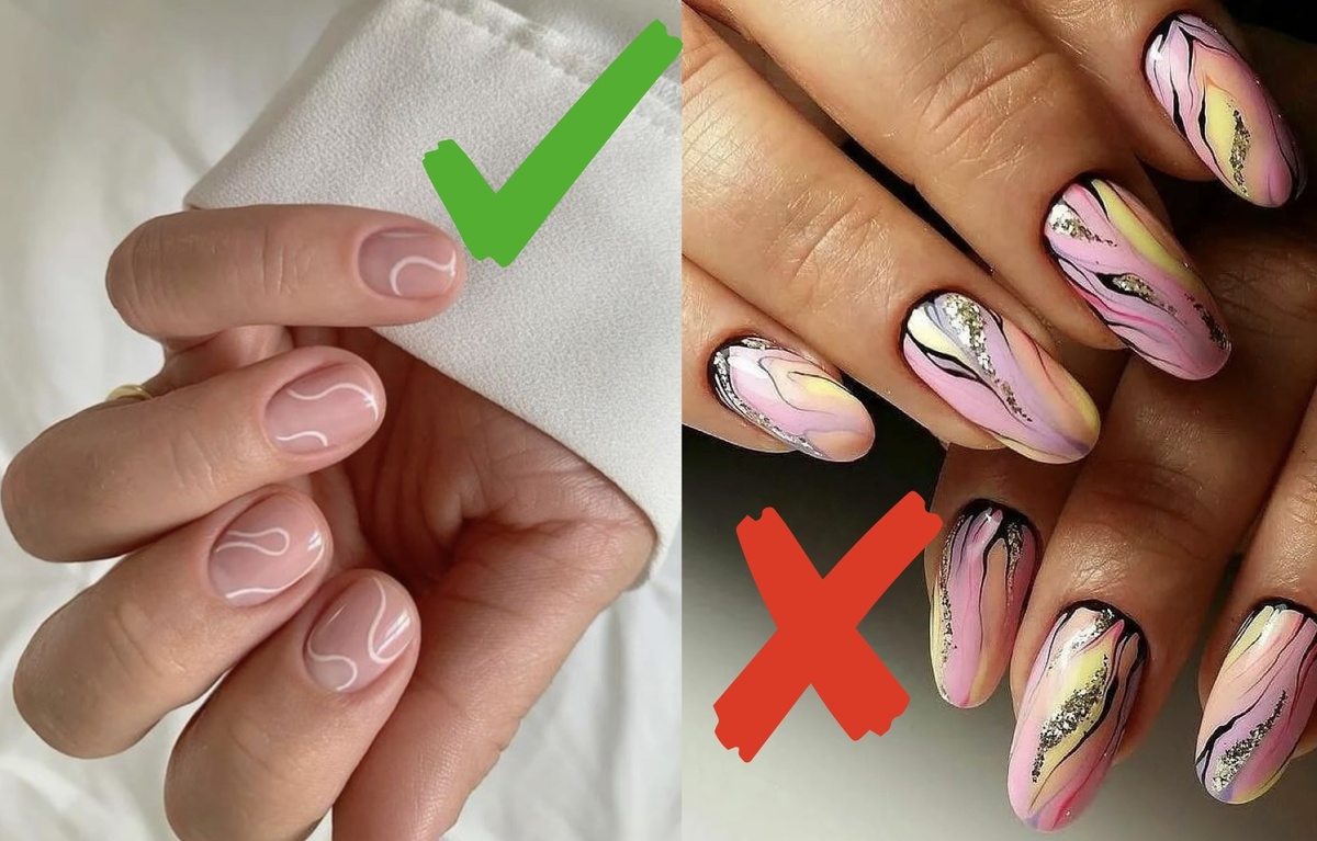 Пожалуйста, избегаете вариантов «дорого-богато», лучше сосредоточитесь именно на вариациях микро-нейл-арта. Другими словами - стремитесь к минимализму.