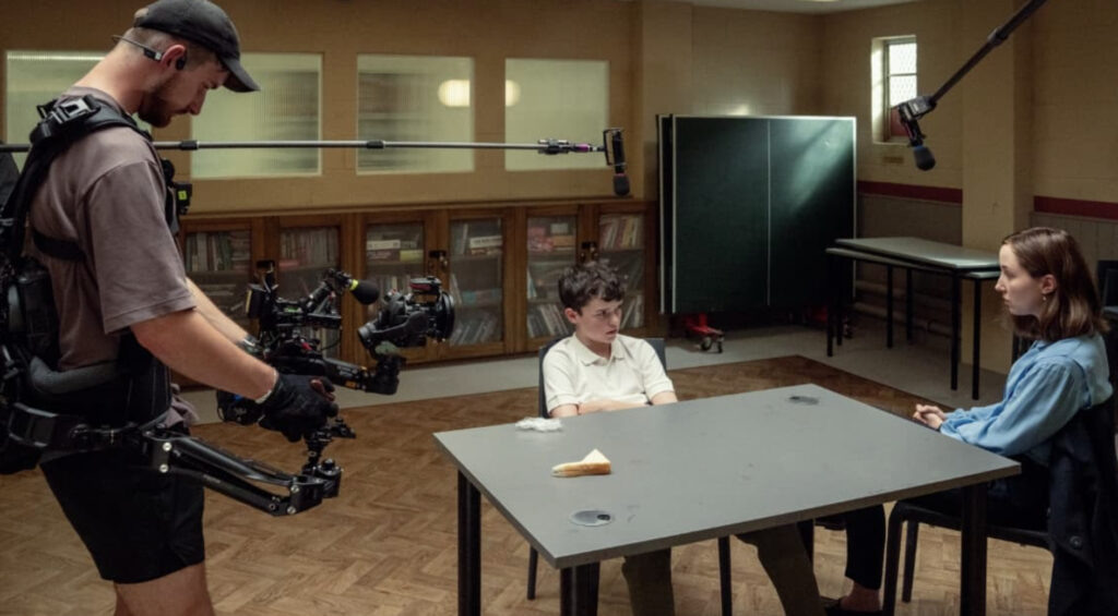 Главная фишка кинокамеры DJI Ronin 4D — встроенный 4-х осевой стабилизированный подвес. А также эргономика, направленная на достижение максимального удобства при съемке с рук. Единственный минус — вес системы в 4.67 кг (без объектива и карты-памяти). Поэтому на съемках «Переходного возраста» использовались дополнительные разгрузочные системы (см. изображение выше).