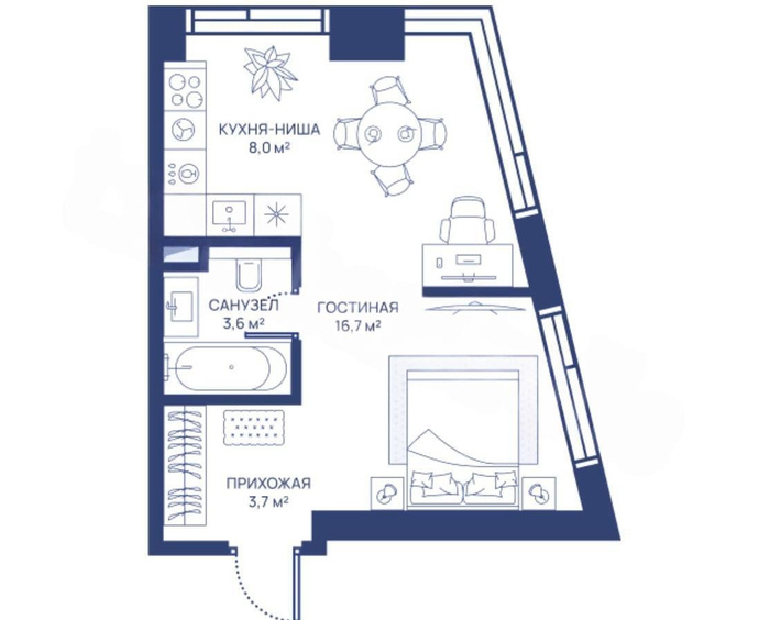 Если посчитать площадь квартиры на этой картинке, получается 32 м.кв. Окей, ладно. А теперь проводим расчет как я очень люблю делать и как делал, когда сам выбирал квартиру и смотрел эти чудо картинки с нарисованной мебелью. Все очень просто. Базовый модуль у кухни 60см, на картинке представлено аж 6 базовых модулей. Дальше еще проще. Так как я с телефона, то использую банальную линейку. Увеличиваю картинку до того момента, когда линейка показывает ширину базового модуля в 5мм. Дальше обмеряем периметр квартиры линейкой, эти цифры делим на ширину базового модуля и получаем каждую стенку квартиры в количестве базовых модулей. Умножаем на 60см и получаем плину каждой стенки. Ну, а дальше дело за малым.