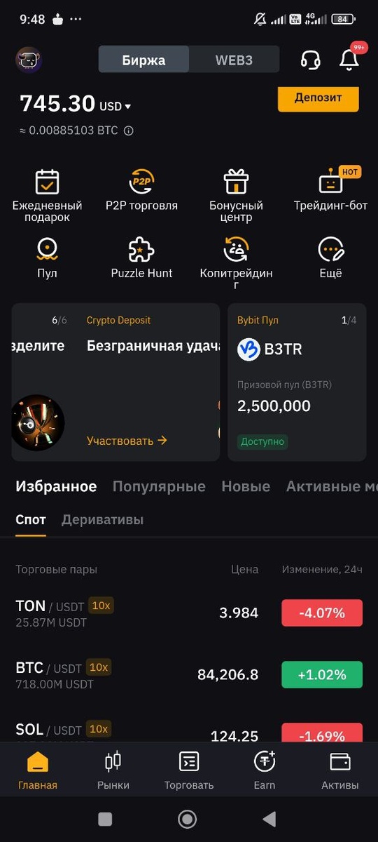 Торгую я в основном TON, SOLANO, BITCOIN, Эфиром (ETH) Сейчас у меня свободно 350 usdt,хочу докупить SOL и ETH. Ну и конечно закупится битком.Смотрим, получиться ли сегодня закупится. https://www.bybit.com/invite?ref=D11LWQZ #sol #ETH #крипта #торговля