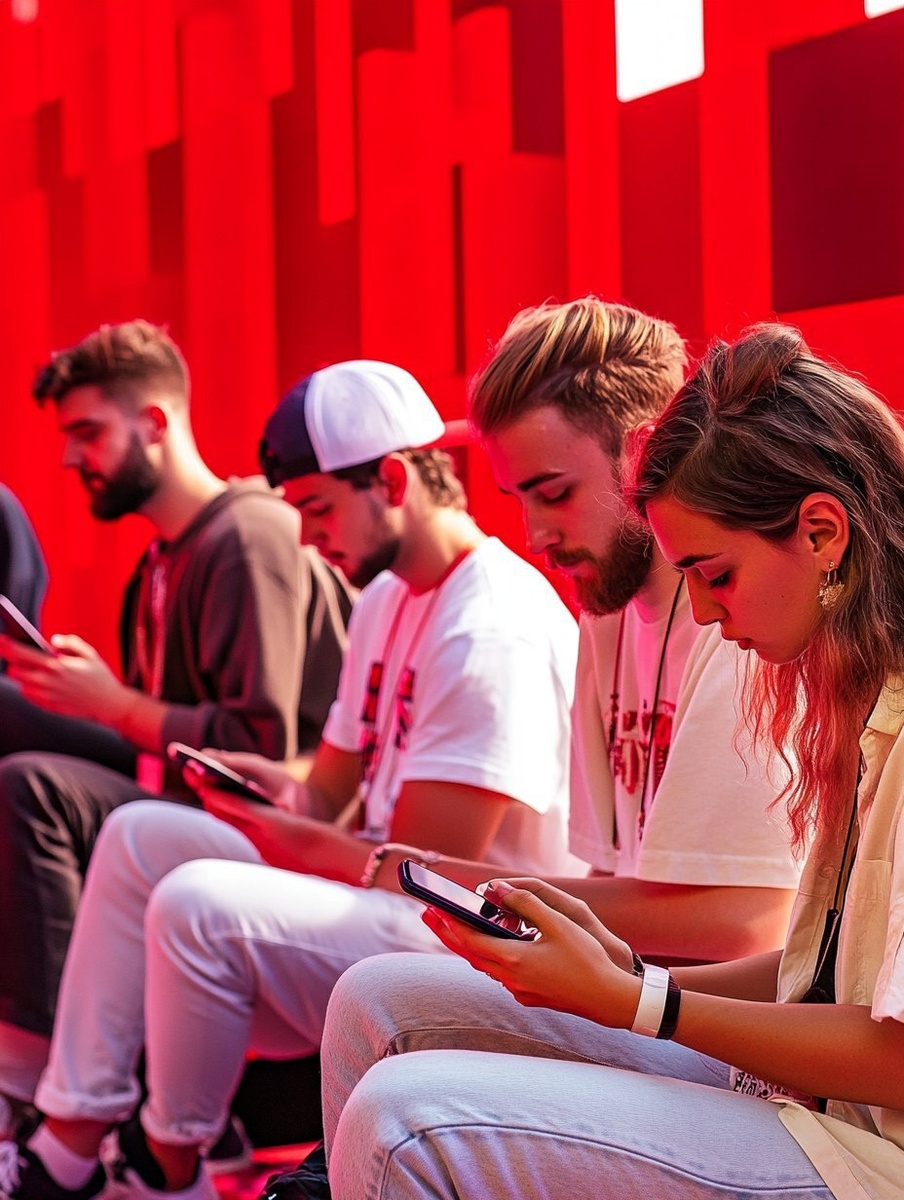 Создано на основе запроса: a photo of a red festival for white young people. They are next to a red stage with white slides and a moderator on it. All of them are looking in their phones. The photo was taken on iPhone, in casual. --- Автоперевод: Фотография красного фестиваля для белых молодых людей. Как тебе иллюстрация? 🤔 https://dzen.ru/id/65c0c65c86e4f837c27b24d7 #ИИ #AI #нейросеть #midjourney #art