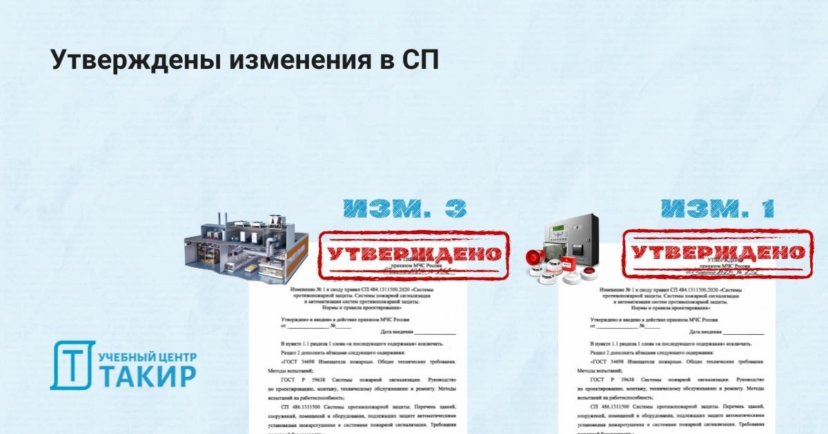 Утверждены изм. №1 в СП 484.1311500 и изм. №3 СП 7.13130 ℹ Приказом МЧС России от 27.03.2025 № 251 утверждено Изменение №3 к своду правил СП 7.13130.2013 «Отопление, вентиляция и кондиционирование. Требования пожарной безопасности». Смотреть изменения СП 7 (https://clck.ru/3KLvTv) Напоминаем, что до 18 апреля 2025 года проходит публичное обсуждение Изменения № 4 к СП 7.13130.2013. ℹ Приказом МЧС России от 27.03.2025 № 252 утверждено Изменение № 1 к своду правил СП 484.1311500.2020 «Системы противопожарной защиты. Системы пожарной сигнализации и автоматизация систем противопожарной защиты. Нормы и правила проектирования». 🔥 Коллегами с канала "ПожИнсайт" подготовлен сравнительный файл СП 484 "было-стало". Смотреть изменения СП 484 (https://clck.ru/3KLvRA) Постоянные формы сбора от МЧС России, куда можно отправлять свои замечания и предложения вне общественных обсуждений.
