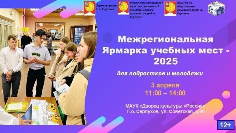 Ярмарку учебных мест проведут в Серпухове 28 Межрегиональная Ярмарка учебных мест – 2025 состоится завтра, 3 апреля во Дворце культуры «Россия». На мероприятии будут участвовать более 50 профессиональных учебных заведений из Серпухова, Москвы, а также Московской, Тульской и Калужской областей. Основная цель мероприятия – помочь подросткам и молодежи сделать осознанный выбор профессии и спланировать свою карьеру. На Ярмарку приглашаются ученики 9, 10 и 11 классов общеобразовательных школ, студенты профессиональных учебных заведений, их родители и жители городского округа Серпухов.