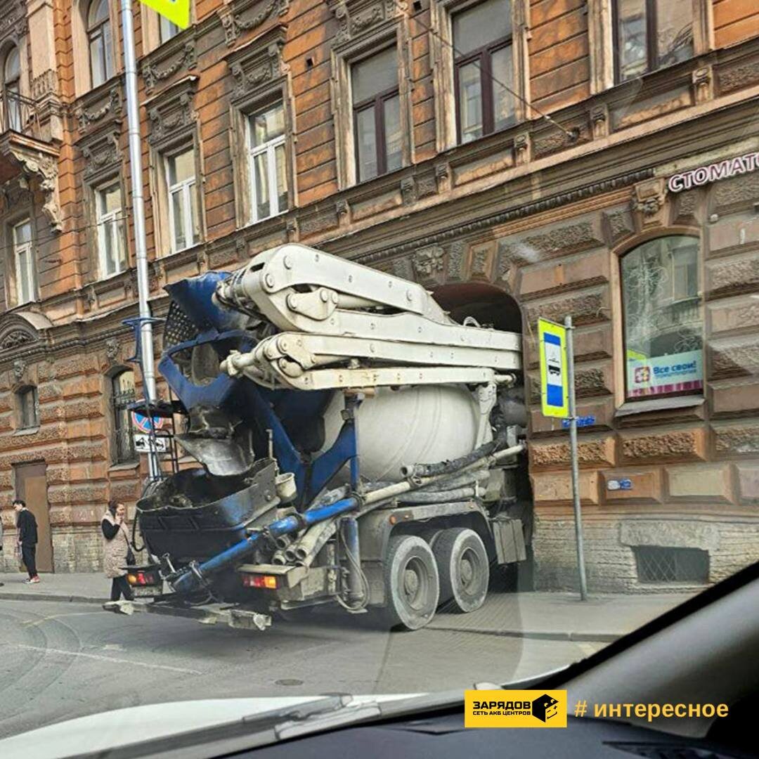 День дурака отметил водитель бетономешалки в Питере — попытка проехать через арку засчитана и это было смело, жаль не учел габариты.