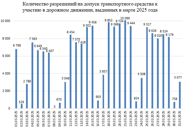 Услугой по получению разрешения в электронной форме в марте воспользовались 2 039 автовладельцев. На новые транспортные средства (2024—2025 годов выпуска) без посещения диагностической станции и прохождения контрольно-диагностических работ оформлены 284 электронных «дозвола».