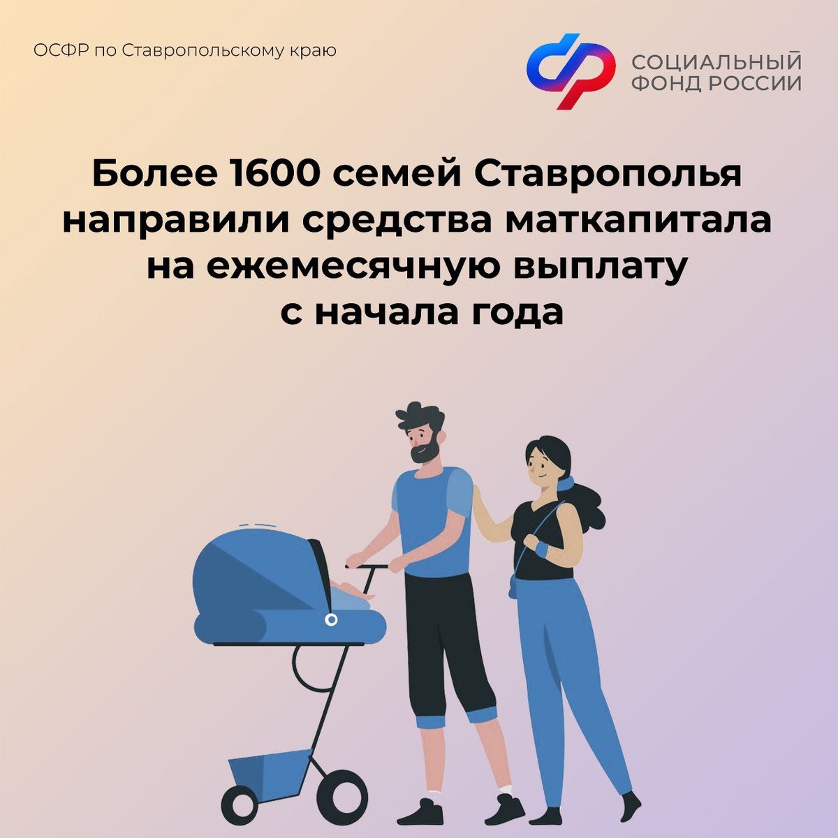 С начала года Отделение СФР по Ставропольскому краю назначило ежемесячную денежную выплату из средств маткапитала 1600 семьям региона.