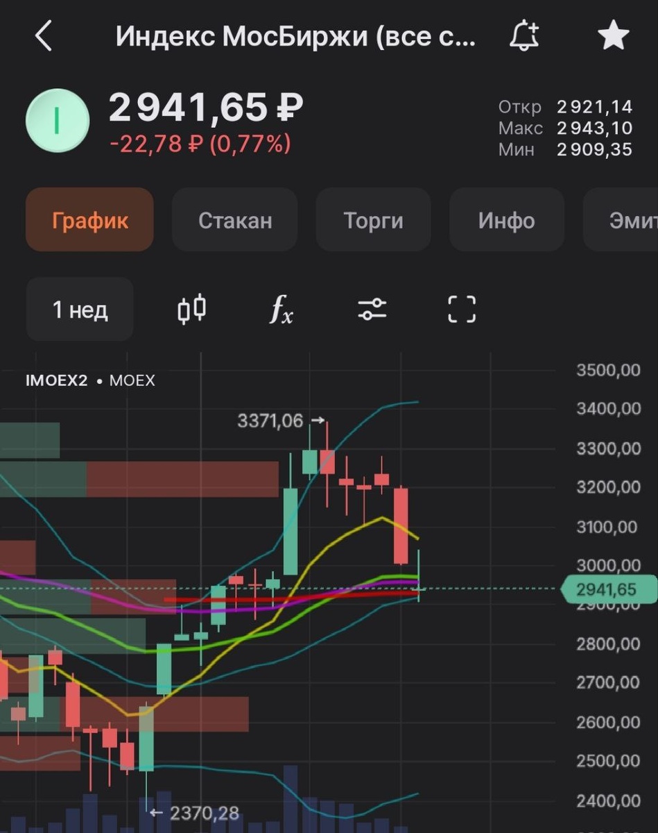 Индекс Мосбиржи #IMOEX2 приехал на тест недельной EMA55 и на уровни начала года.