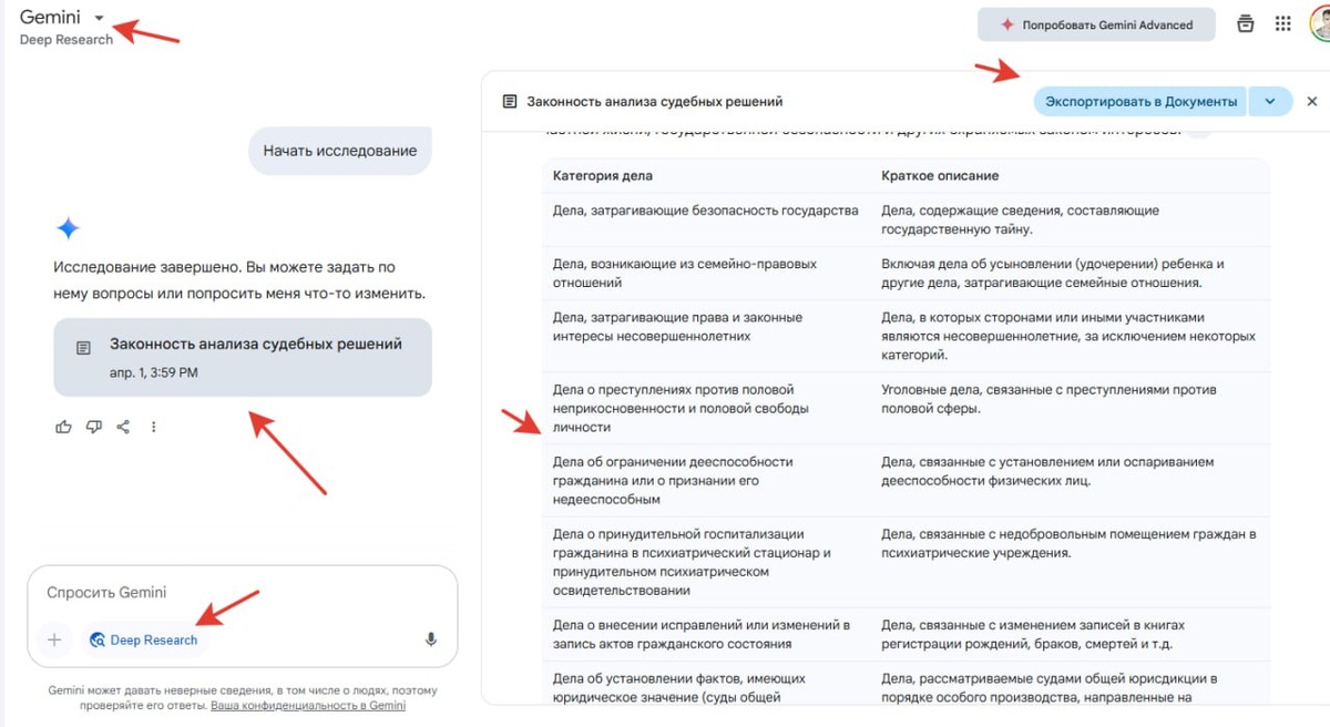 Прикоснулся к будущему. Мне стало интересно - можно ли брать PDF файлы с судебными делами (гражданские суды, решения) и проводить с помощью ИИ их анализ. Решил попробовать Deep Research - докладываю - это просто космос. 5 минут и я получил очень объемным анализ, с ссылками на всевозможные источники с возможностью моментального экспорта в Google Docs. Русский ИТ бизнес