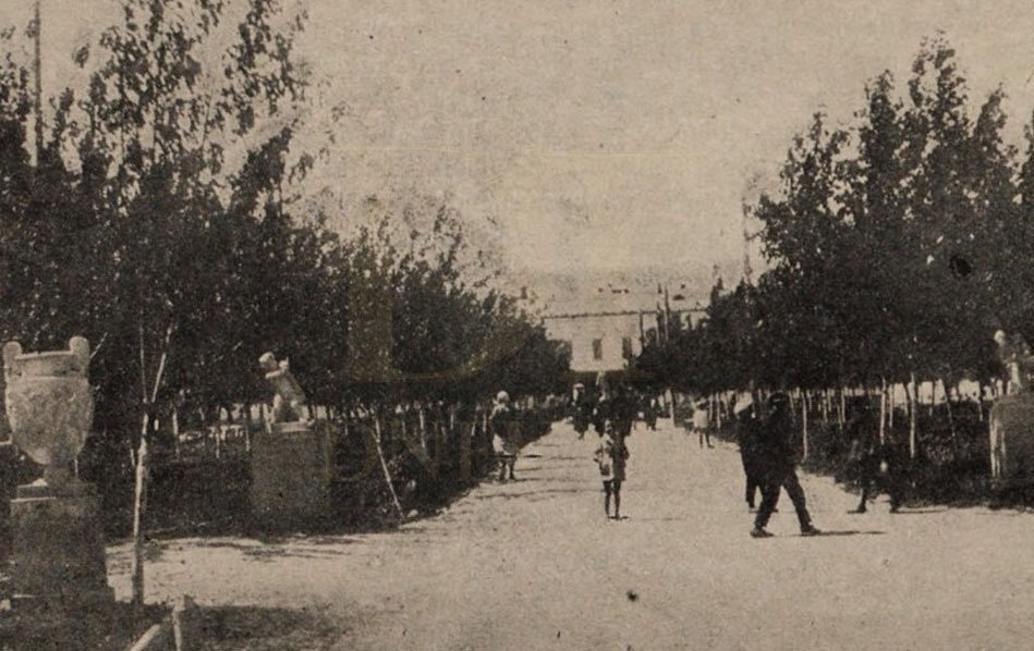 В 1935 году облик гимназического сквера в Таганроге представлял собой изящный образец советского неоклассицизма – пространство украшали