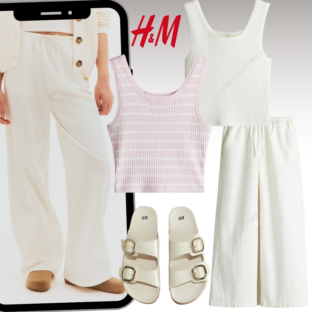 #HandM 🇺🇸 Топ для девочек 1535₽ ➡️ 1305₽ + вес Брюки для девочек 4607₽ ➡️ 3839₽ + вес 70% хлопок, 30% лен Сандалии для девочек 4607₽ ➡️ 3839₽ + вес для заказа писать 🖤@dianabrill