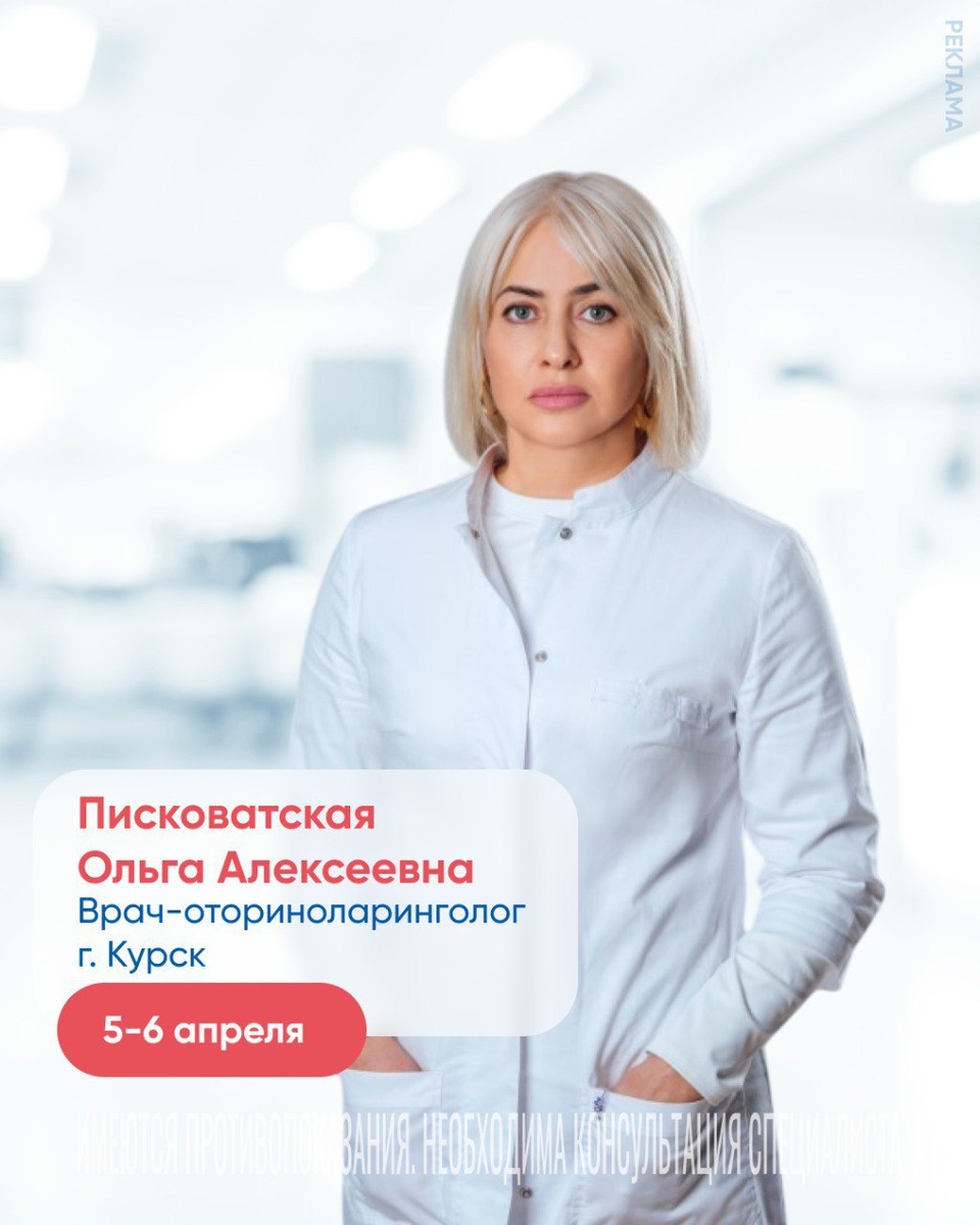 erid: 2Vtzqw6bp4Z В «Клинике Эксперт» Борисоглебск приём ведет врач-отоларинголог Ольга Алексеевна Писковатская. Дата приёма: 5 и 6 апреля Ольга Алексеевна — опытный специалист с 30-летним стажем работы, готова помочь вам и вашим близким справиться с заболеваниями уха, горла и носа. Врач ведёт приём пациентов всех возрастов, включая детей с рождения. Не забудьте записаться заранее! Предварительную запись можно оформить у наших операторов по т. 8 (473-54) 5-55-03 Реклама. Рекламодатель — ООО «КЛИНИКА ЭКСПЕРТ ВОРОНЕЖ» ИНН 3665828590