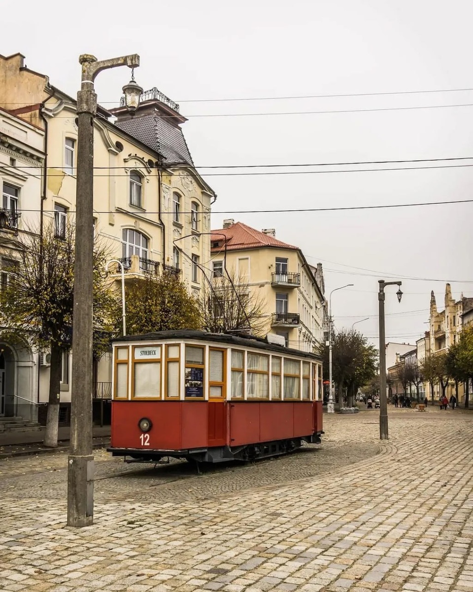 Это трамвайный вагон 1940-1950-х годов, привезённый из Санкт-Петербурга. Памятник тильзитскому трамваю на центральной площади Советска официально открыли 1 сентября 2012 года