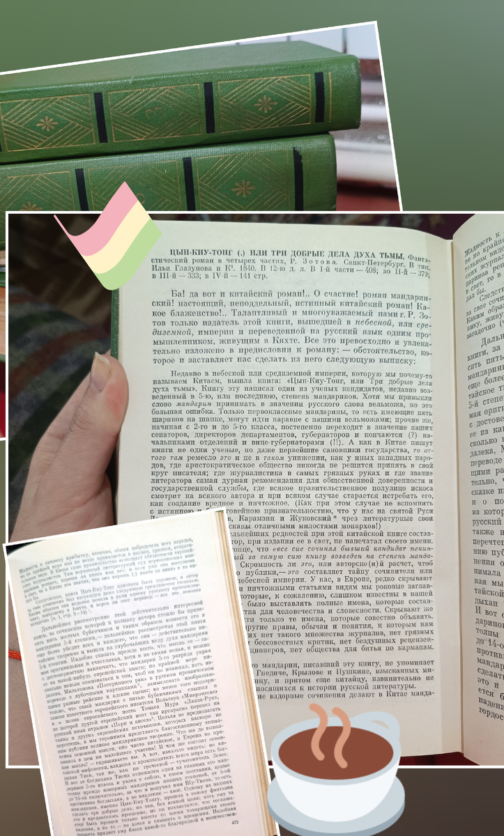 Так что наверное Зотова можно считать сильно причастным к написанию романа. Что впрочем не особо важно сейчас, куда важнее то, что "Цын-Киу-Тонг (,) или Три добрые дела духа тьмы" - интересное произведение, написанное в непростую для Китая эпоху предположительно китайцем, а даже если и русским (тут три варианта авторства - неизвестный китайский писатель, неизвестный промышленник, живший в Китае и сам Зотов, естественно).