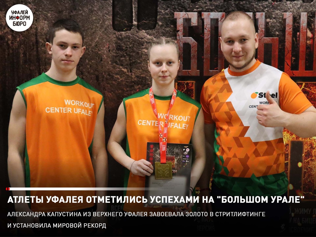 Спортсмены из Верхнего Уфалея достигли высочайшего уровня мастерства, выполнив норматив мастера спорта международного класса и установив мировой рекорд в стритлифтинге. Команда Workout Center Ufaley (МБУ "СОЦ "Никельщик") приняла участие во Всероссийском турнире "Большой Урал", который состоялся в Перми. Более 300 участников со всей страны соревновались в различных дисциплинах, включая пауэрлифтинг, жим лежа, становую тягу и стритлифтинг. Организаторами выступили федерации WRPF, WEPF, WSF и СПР. Среди участников были воспитанники тренера Дениса Микрюкова, которые выступили в двух дисциплинах: "Строгий подъем на бицепс" и "Стритлифтинг". В стритлифтинге, в возрастной категории "Девушки 13-19 лет" и весовой категории до 52 кг, Александра Капустина завоевала золото, выполнив норматив МСМК. Она подтянулась 12 раз с дополнительным весом 10 кг, что стало новым мировым рекордом, официально зафиксированным федерацией. В дисциплине "Строгий подъем на бицепс" в категории "Юноши 16-17 лет" (