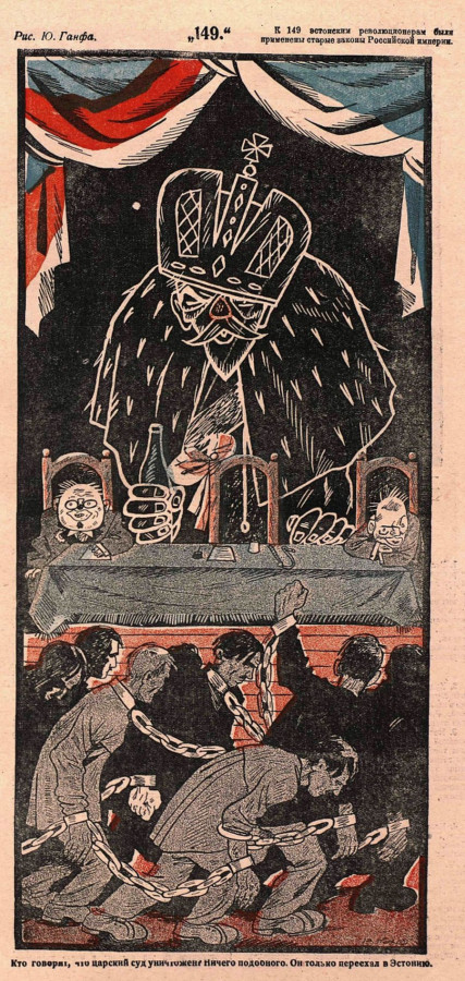 Юлий Ганф (1898—1973). «149». «К 149 эстонским революционерам были применены старые законы Российской империи. Кто говорит, что царский суд уничтожен? Ничего подобного. Он только переехал в Эстонию». 1924