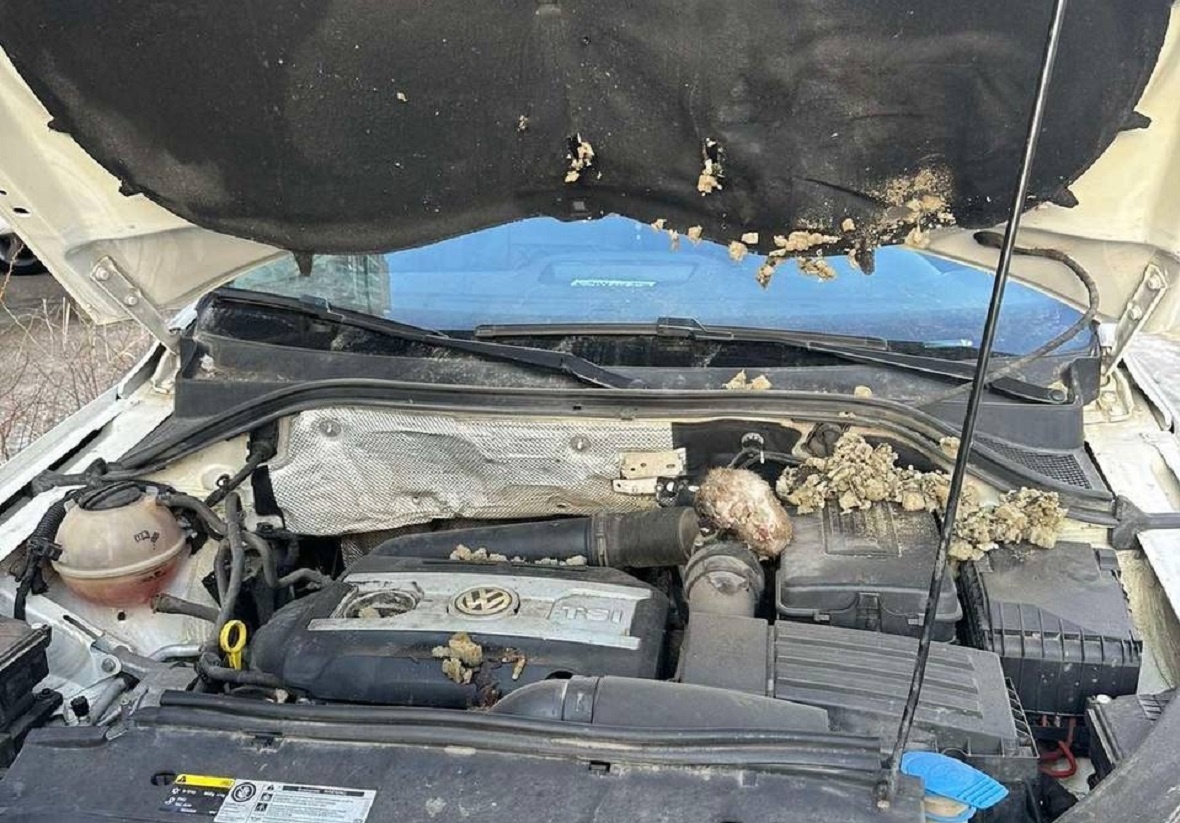 «Находку» обнаружила местная жительница. По её словам, Volkswagen стоял на парковке между домами 25 и 27/1 на Лесников около недели. За это время под капотом поселилась крыса. Она принесла туда объедки и погрызла тканевую обшивку.