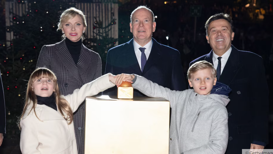 Шарлен и Альбер вместе со своими детьми зажгли огни, которые в течение следующих нескольких недель будут украшать Скалу.