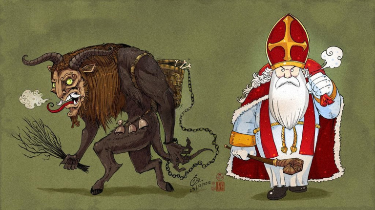 Крампус и Святой Николай. Иллюстрация: In-Sine, deviantart.com