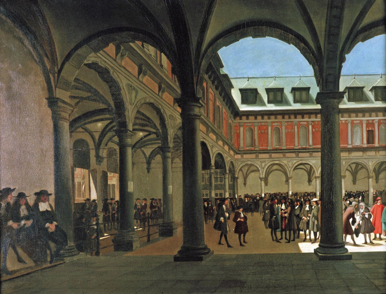 Амстердамская биржа. Иллюстрация: Job Berckheyde, Amsterdam Museum, am.adlibhosting.com