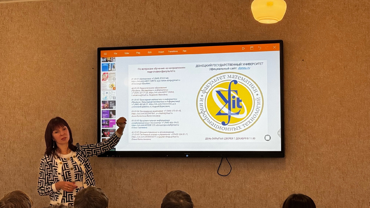 С 2024 года по инициативе ректора МГУ им. М.В. Ломоносова академика В.А. Садовничего День математика отмечается 1 декабря. К этой дате было приурочено проведение недели математики в гимназии №122. Сотрудники Научно-образовательного математического центра ДонГУ, преподаватели кафедры высшей математики и методики преподавания математики совместно со студенческим активом ФМИТ подготовили и провели встречу со старшеклассниками Донецкой гимназии № 122 по приглашению администрации. На встрече присутствовали ученики 10-11 классов, учителя, представители администрации. Математики ФМИТ рассказали о перспективах поступления на факультет математики и информационных технологий, об особенностях обучения по каждому из семи направлений подготовки бакалавриата, о возможностях научных исследований студентов при обучении в бакалавриате, магистратуре, аспирантуре. Также ребята узнали об открытии и работе Научно-образовательного математического центра «Математический центр Донецкого государственного униве